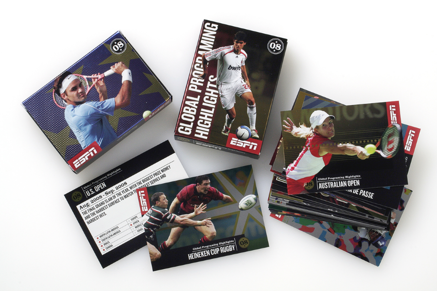 Tactile promo collectible cards, an auditory left hook delivered through the TV promo, and a visual adrenaline blast in the programming brochure have helped ESPN close the deal time after time.